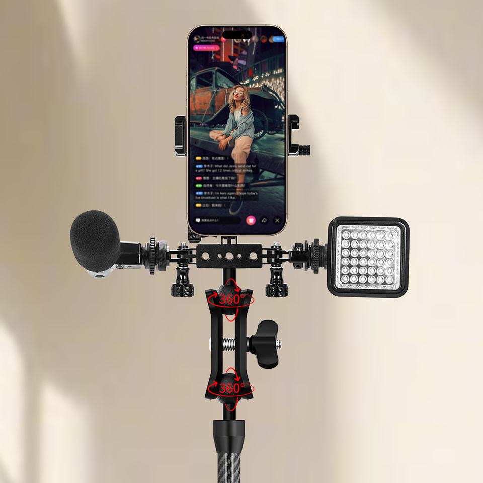 อะแดปเตอร์ยึดโทรศัพท์มือถือกล้องสามตัวทำจากอลูมิเนียมอัลลอยด์สำหรับขาตั้งกล้องเซลฟี่หัวบอลที่หนีบแขนวิเศษสำหรับ GoPro HERO 13