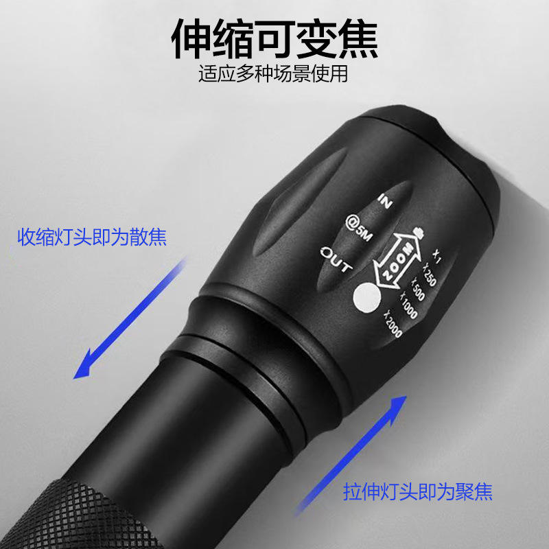 ไฟฉายซูมอลูมิเนียมอัลลอยด์ 1200mAh LED กันน้ำ ปรับโฟกัสได้ พื้นผิวขัดเงา สำหรับการลาดตระเวนขี่จักรยานกลางแจ้ง