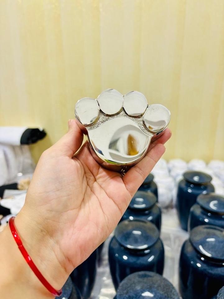 โกศใส่เถ้ากระดูกอลูมิเนียมสำหรับสัตว์เลี้ยงทำจากโลหะโกศทรงอุ้งเท้าทองสีดำทำจากในอินเดีย