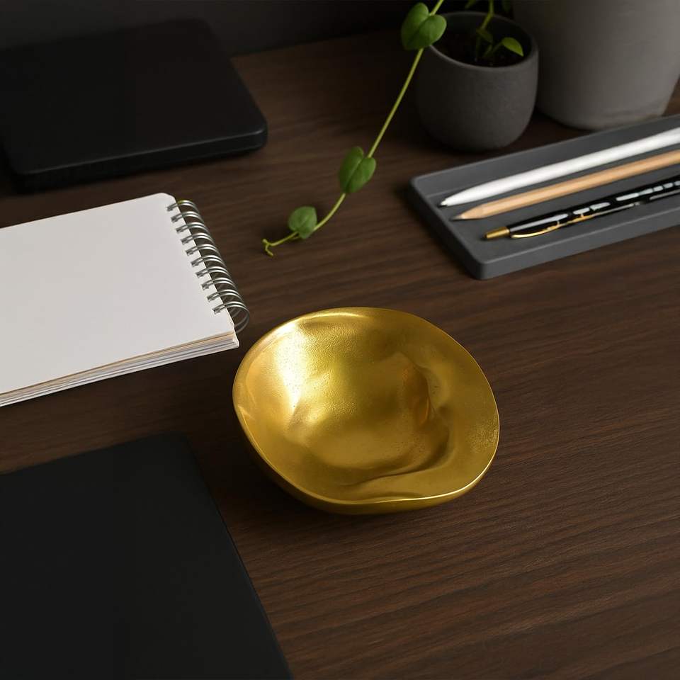 Aluminum Casted Bowl With Glossy Brass Finished for Home Office Decor