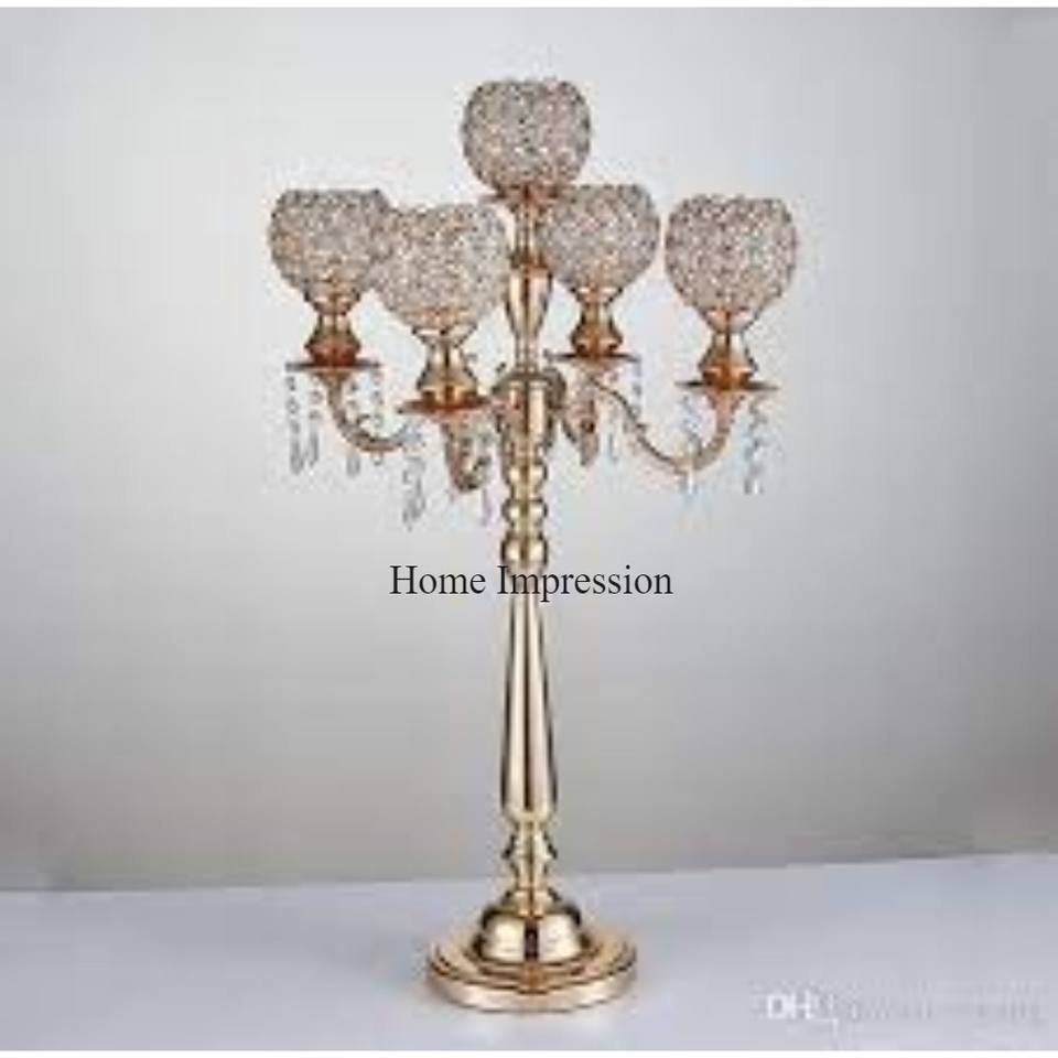 เชิงเทียนอลูมิเนียมเคลือบทองที่มีเอกลักษณ์สลักดีไซน์ที่มีมาตรฐานสูงสำหรับตกแต่งบ้านและร้านอาหาร