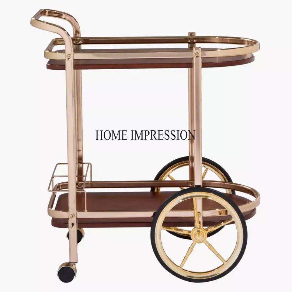 ถาดอลูมิเนียมเคลือบทองเกรดสูงพร้อมกระจกใสใสมีล้อถาดอาหารและเครื่องดื่ม