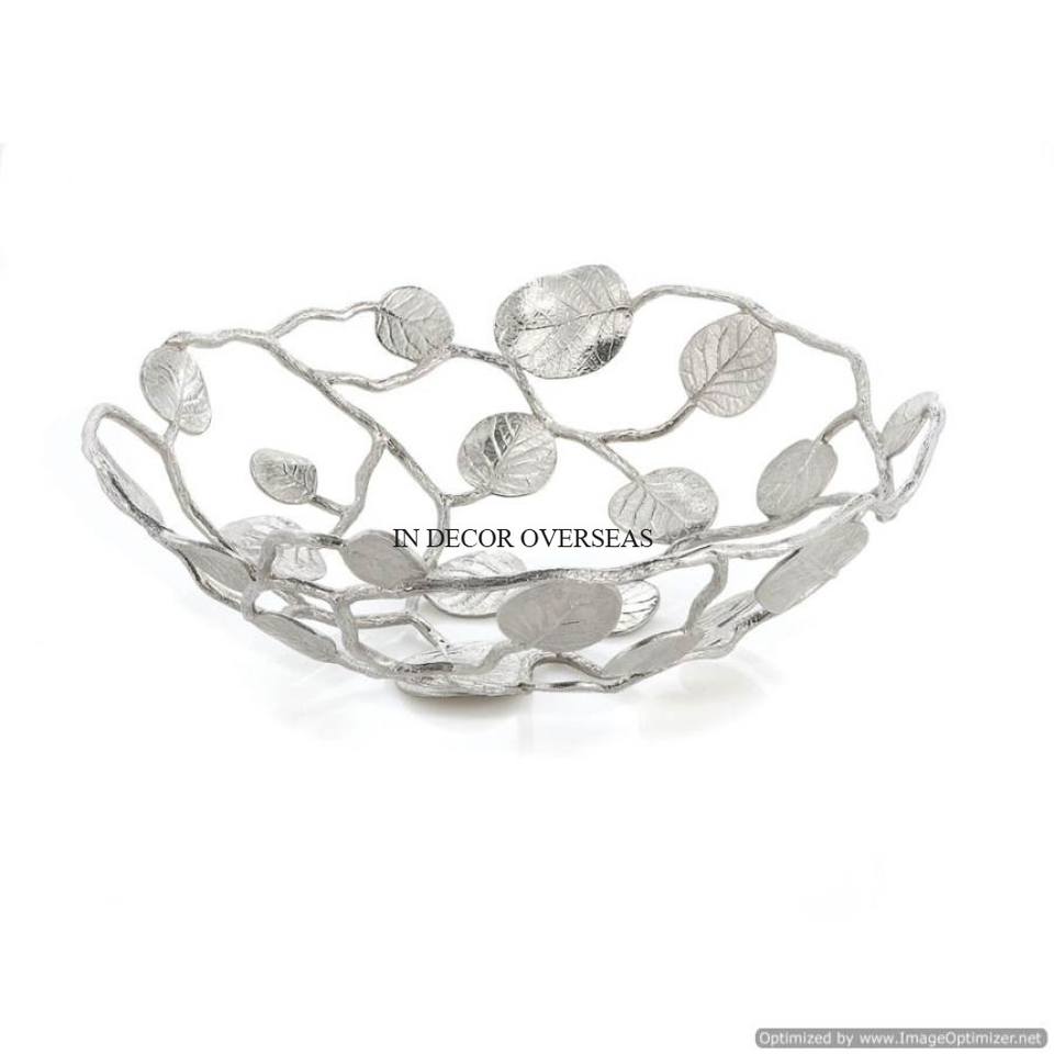 ชามสำหรับวางตรงกลางโต๊ะอุปกรณ์ตกแต่งและเสิร์ฟผลไม้เคลือบเงาทำจากอลูมิเนียมเคลือบสีเงิน
