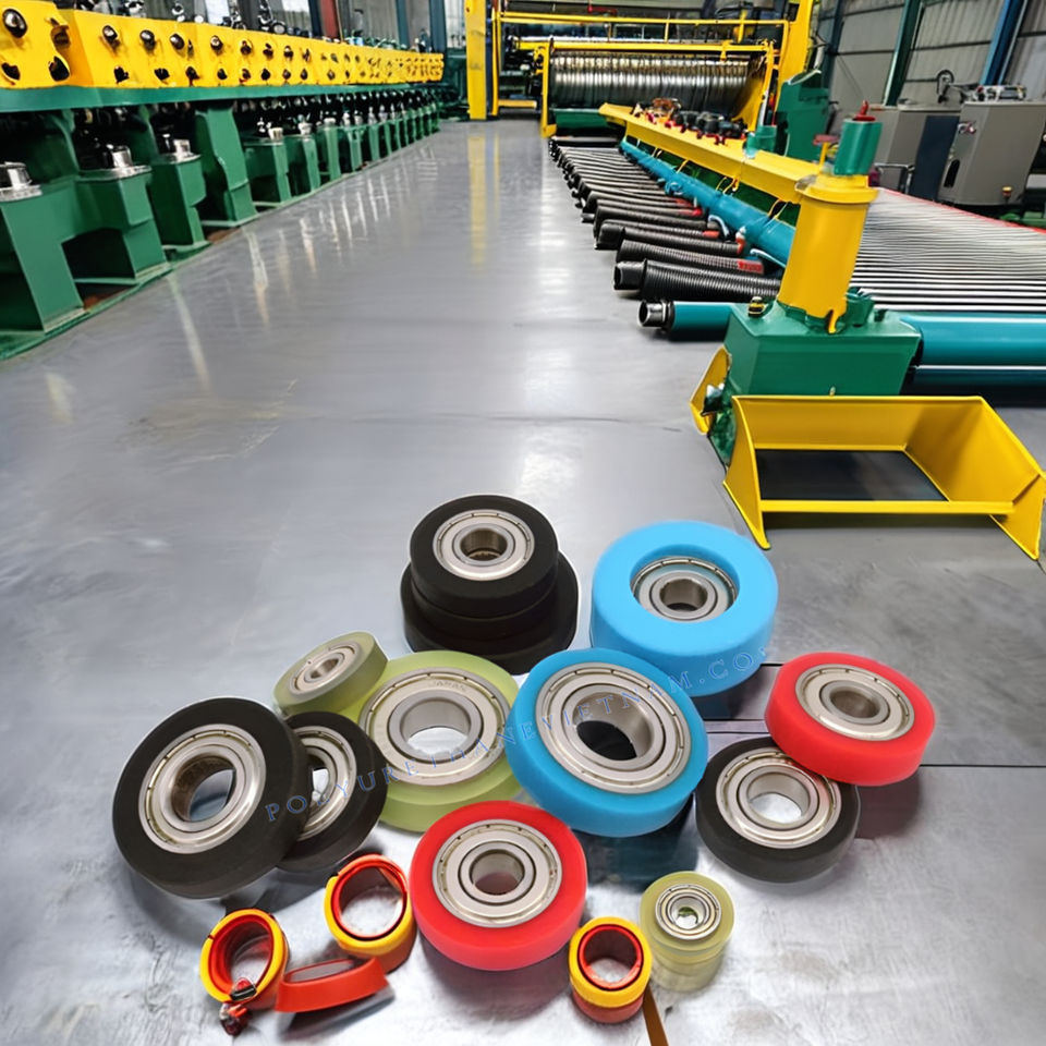 ลูกกลิ้งยางโพลียูรีเทน (PU) ที่ติดตั้งตรงกลางอลูมิเนียมลูกกลิ้งยางคุณภาพสูง