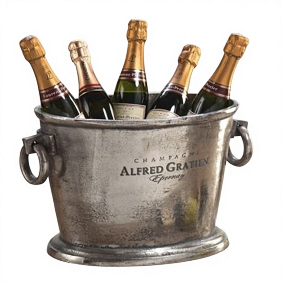 ถังแช่ไวน์และน้ำแข็งอเนกประสงค์อะลูมิเนียมดีไซน์ร่วมสมัย พร้อมที่แช่ขวดเครื่องดื่ม สำหรับงานปาร์ตี้และงานแต่งงาน