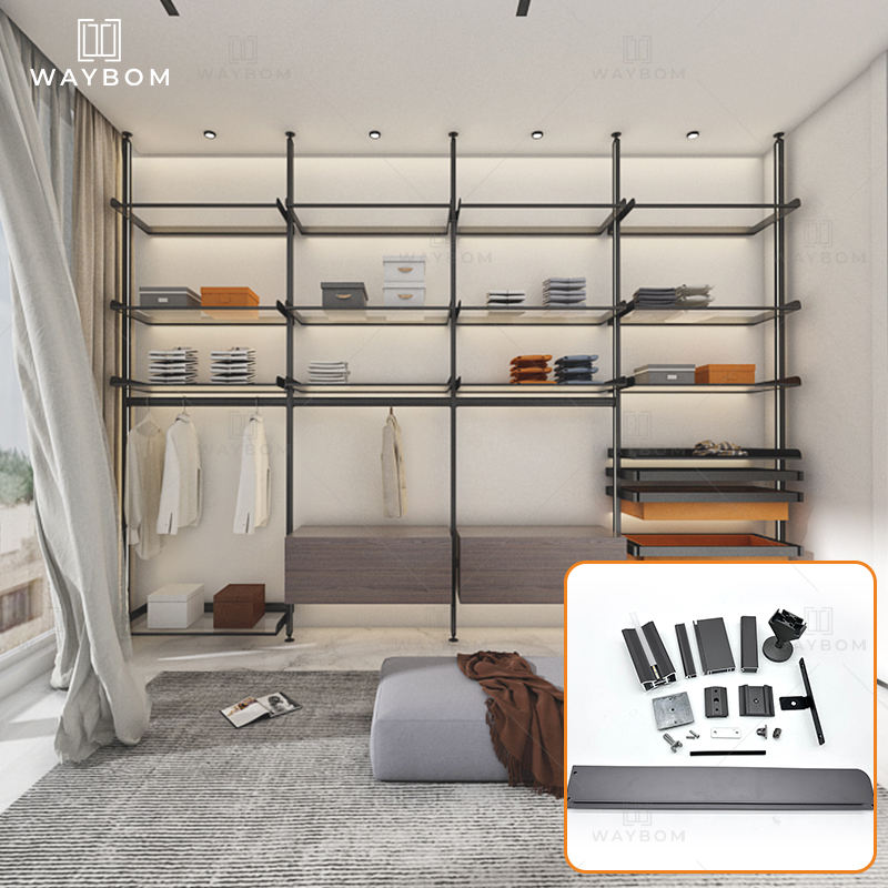 Aluminum Cupboard Kitchen Cabinet Closets Frame Cabinets Wardrobe Bedroom Set Pole Storage System Polo Bookcase Aluminum Profile