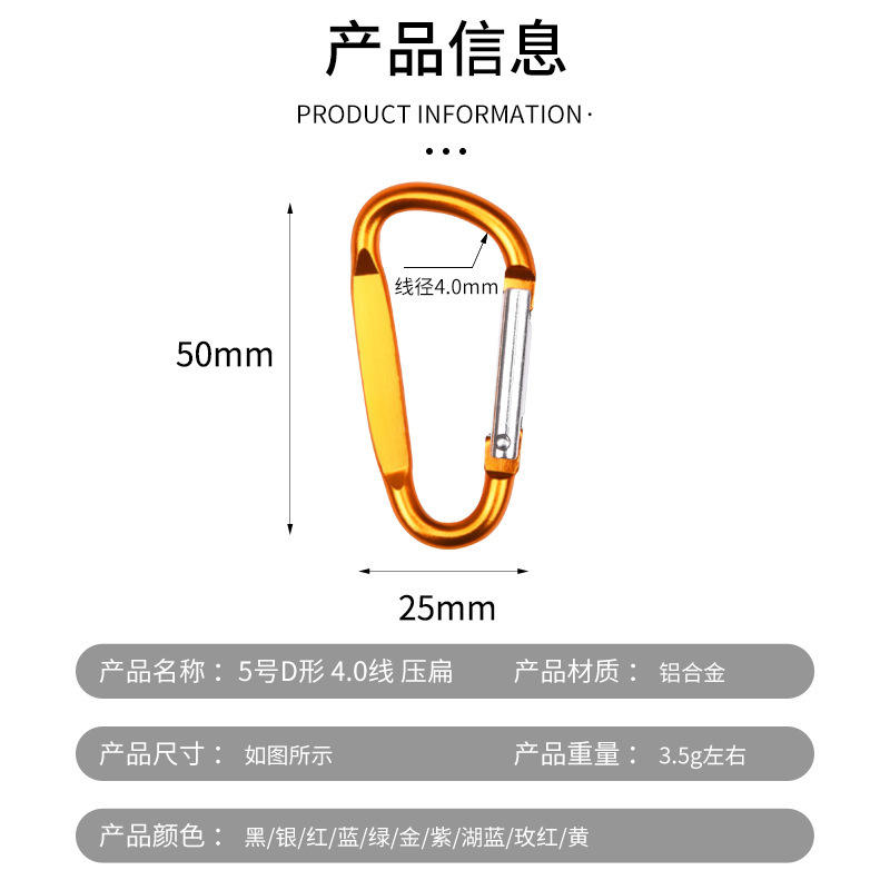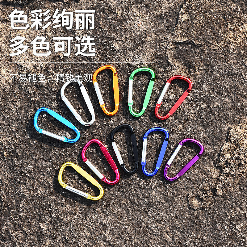 ตะขอเกี่ยวคาราบิเนอร์อะลูมิเนียมชนิด D รับน้ำหนักได้ 5 กก. อุปกรณ์เสริมสำหรับกระเป๋าเป้กลางแจ้ง คลิปหนีบขวดน้ำพร้อมดีไซน์ป้องกันการเกิดออกซิเดชัน