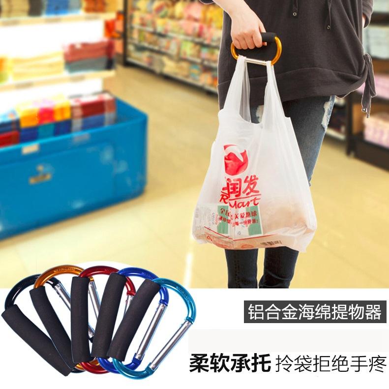 คาราบิเนอร์อะลูมิเนียมชนิด D ตะขอขนาดใหญ่พร้อมที่จับฟองน้ำสำหรับตะกร้าช้อปปิ้งและใช้งานกลางแจ้ง สีแดง รับน้ำหนักได้ 60 กก.