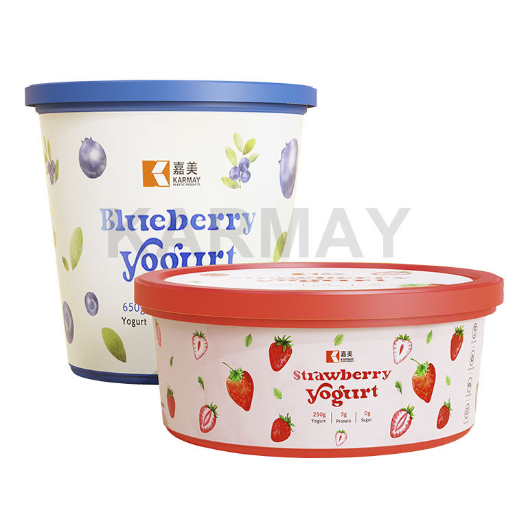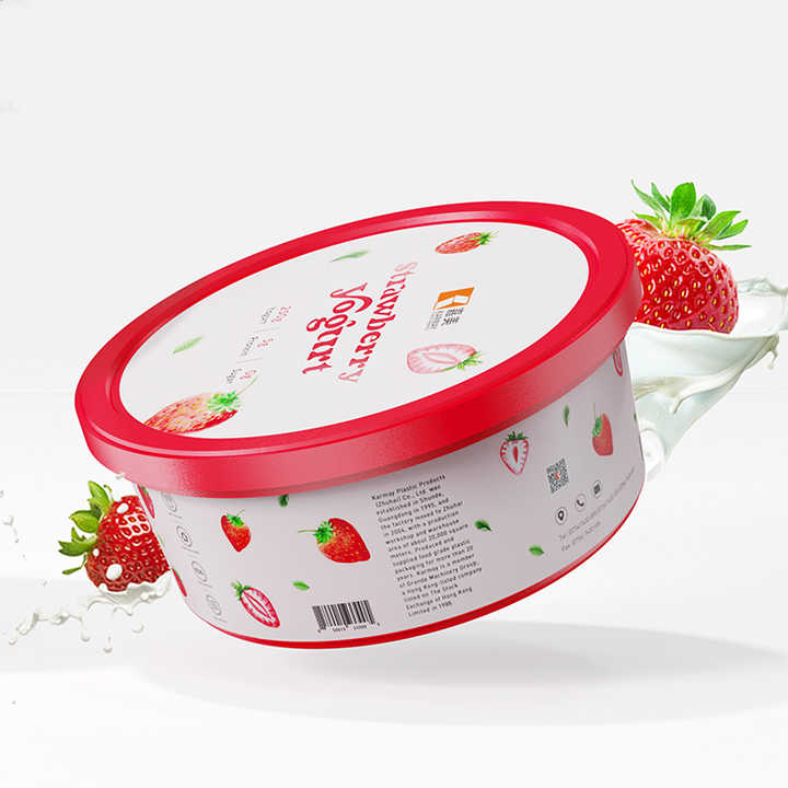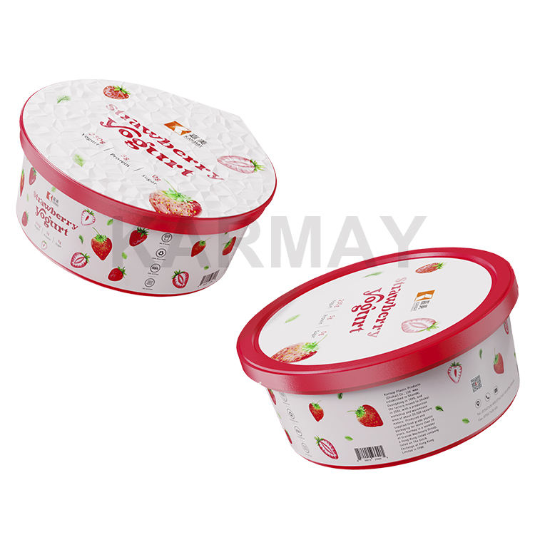อลูมิเนียมฟอยล์ปิดผนึก PP 250กรัม360มิลลิลิตรรอบสีแดง IML แช่แข็งโยเกิร์ตถังสำหรับโยเกิร์ตสตรอเบอร์รี่