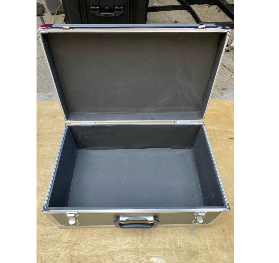 กล่องอุปกรณ์เสริมโครงอะลูมิเนียม แผงโพลีวูด ABS แผ่นโฟมแบบกำหนดเอง หูหิ้วโครเมียม ตัวล็อคแบบหัวเข็มขัด ป้องกันอย่างดี พกพาสะดวก ทำจากโลหะ