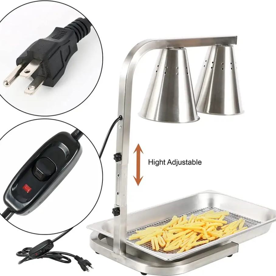 โคมไฟให้ความร้อนแบบตั้งพื้นสำหรับอาหาร ไก่ทอด เฟรนช์ฟรายส์ ทำจากสแตนเลส ปรับระดับได้ ไม่มีส่วนผสมของอะลูมิเนียม สำหรับการถนอมอาหาร