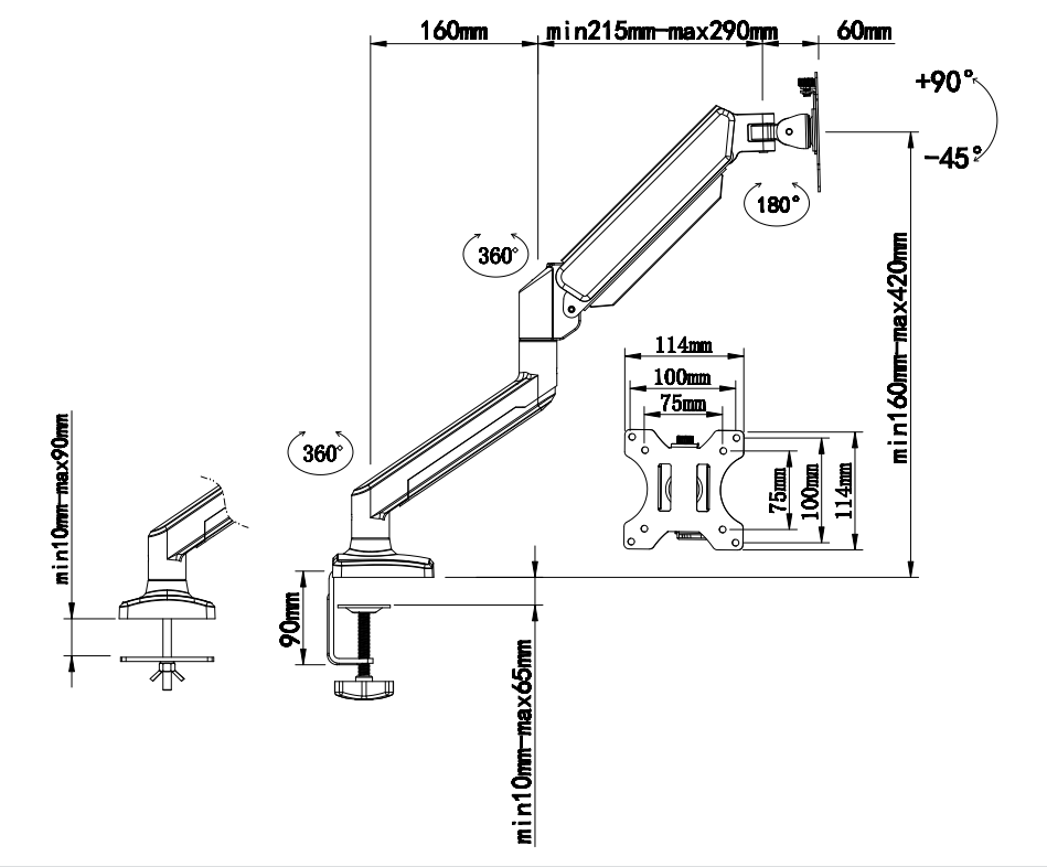 แขนยึดจอคอมพิวเตอร์แบบแก๊สสปริงอะลูมิเนียม Brazo Gcx สีขาว ขาตั้งจอแบบแก๊สสปริง