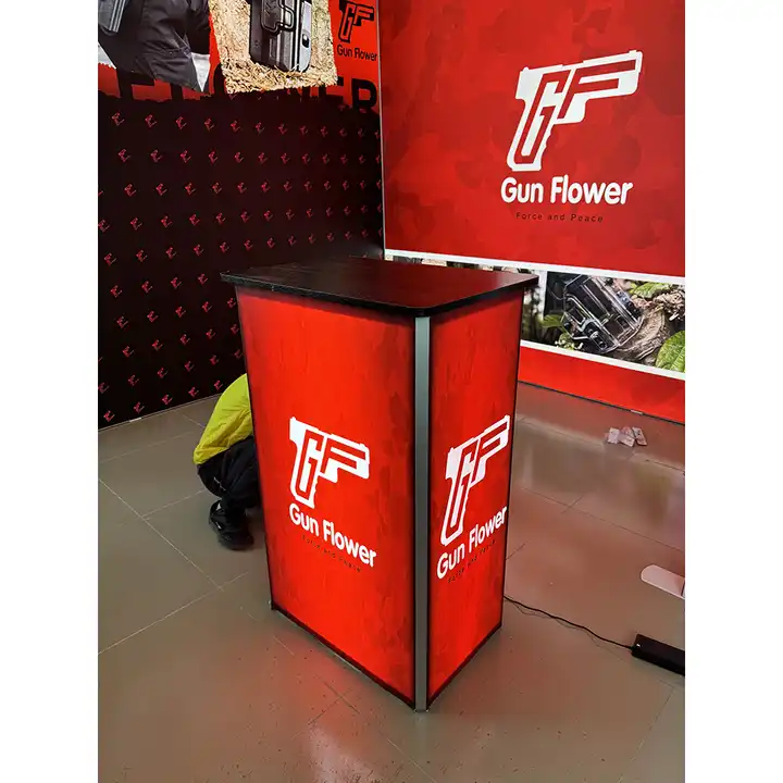 ตู้โชว์อลูมิเนียมน้ำหนักเบาแบบพกพาใช้ซ้ำได้อุปกรณ์โฆษณาตู้โชว์ไฟโต๊ะ LED เรืองแสง