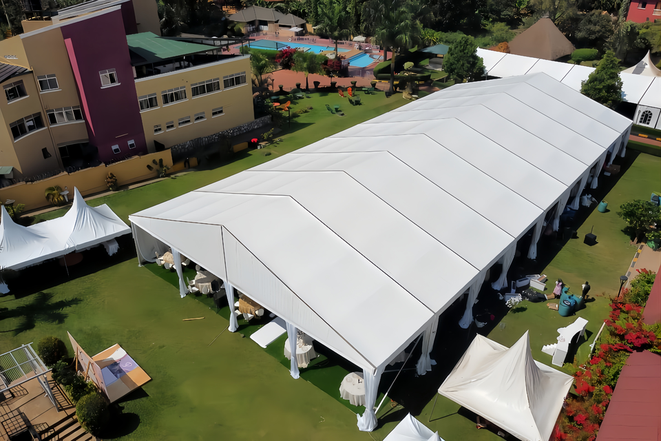 เต็นท์อลูมิเนียมหรูหราขนาดใหญ่สั่งทำพิเศษ 20x30 เมตร สำหรับงานปาร์ตี้กลางแจ้ง งานแต่งงาน รองรับได้ 200 คน เหมาะสำหรับงานอีเว้นท์