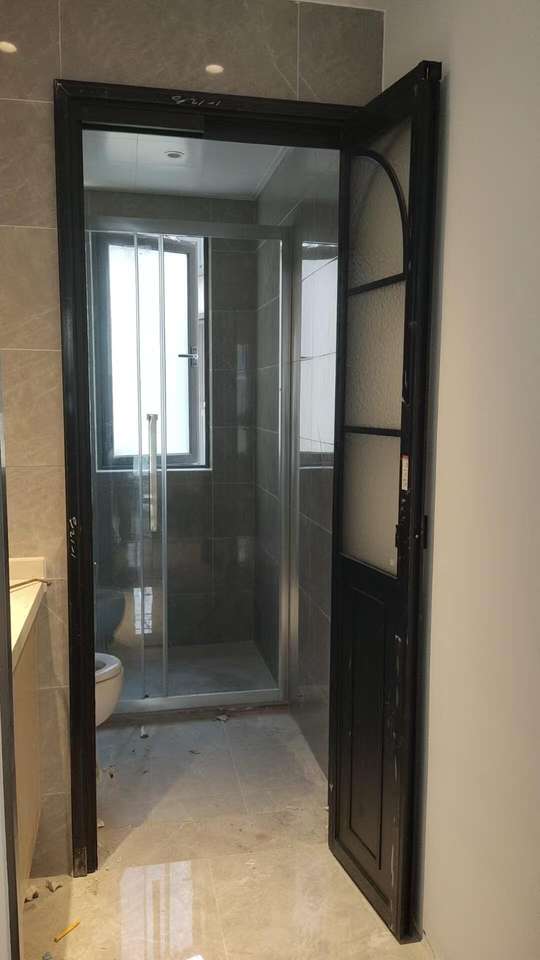รางด้านล่างประตูแบบพับได้สำหรับห้องน้ำห้องน้ำประตูห้องครัวขนาดเล็กกระจกอลูมิเนียม-แมกนีเซียมอัลลอย