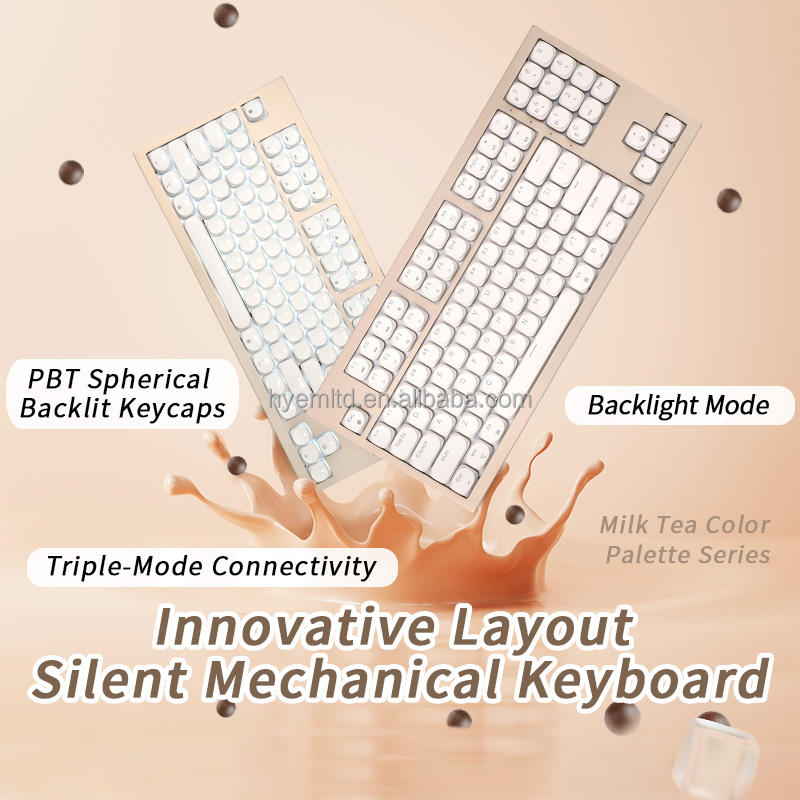 ชุดคีย์บอร์ดเกมมิ่งอะลูมิเนียมแบบกลไก ไตรโหมด 102 ปุ่ม / แบบมีสาย สวิตช์ Kailh ไฟแบ็คไลท์ LED ใหม่จากโรงงาน ขายส่ง