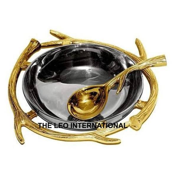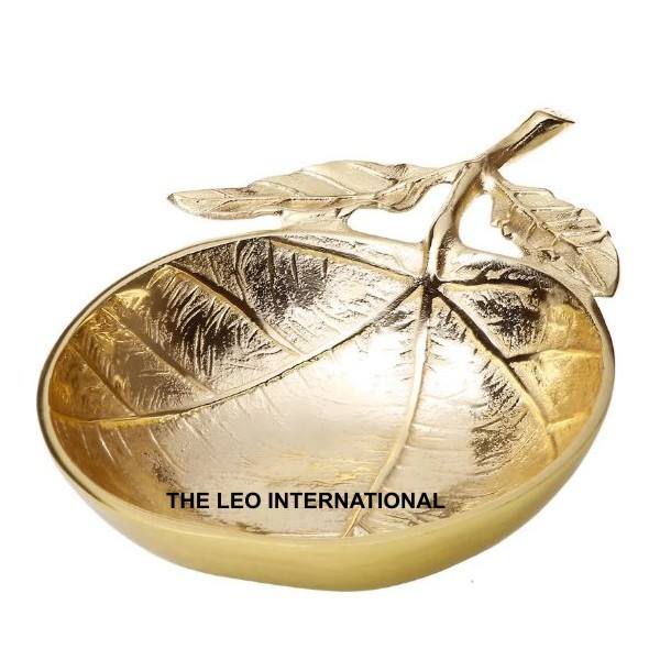 ชามตกแต่งลายใบไม้รูปต้นไม้ชุบทองสองชั้นทำจากอลูมิเนียมโลหะแบบตอก