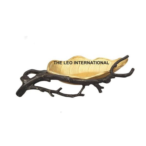 ชามอลูมิเนียมโลหะรูปใบไม้สีน้ำตาลทองที่สวยงามชามถั่วสไตล์แฟนซีเสิร์ฟขนมผลไม้แห้งตกแต่งบ้าน