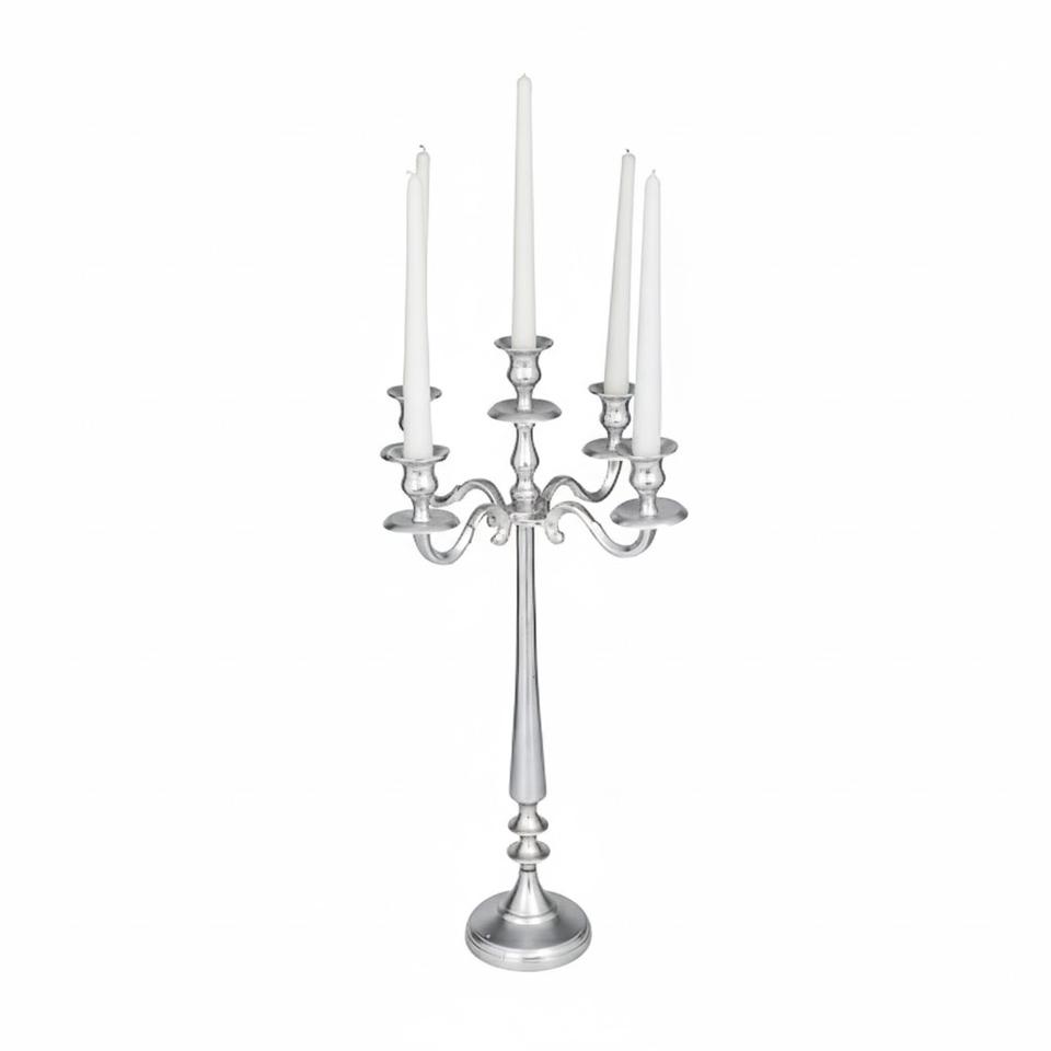 เชิงเทียนอะลูมิเนียม 5 แขน ชุบเงิน สำหรับตกแต่งบ้านและงานแต่งงาน วางบนโต๊ะหรือเป็นของประดับตกแต่ง