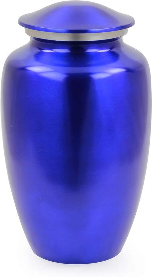 Aluminum Metal Cremation Urns for Ashes & Mortal Remains | Handmade Beautiful Urns for Humans and Pets (Deep Blue)