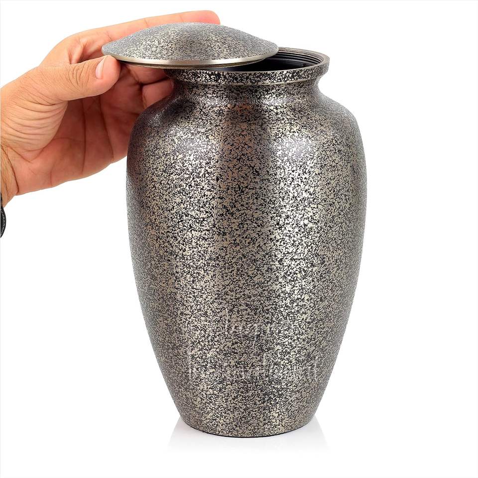 โกศเผาโลหะอลูมิเนียมสำหรับขี้เถ้าและซากมนุษย์ | โกศสวยงามทำด้วยมือสำหรับมนุษย์และสัตว์เลี้ยง (สีดำเป็นจุด)