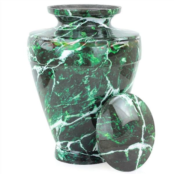 โกศเผาศพโลหะอลูมิเนียมสำหรับขี้เถ้าและซากมนุษย์ | โกศสวยงามทำด้วยมือสำหรับมนุษย์และสัตว์เลี้ยง (หินอ่อนสีเขียว)