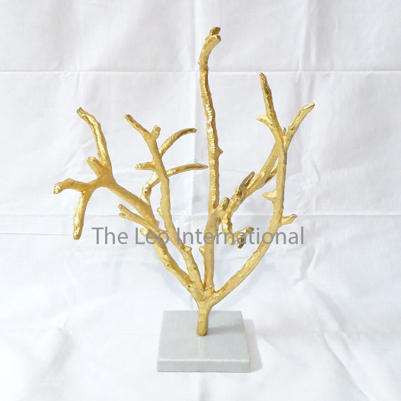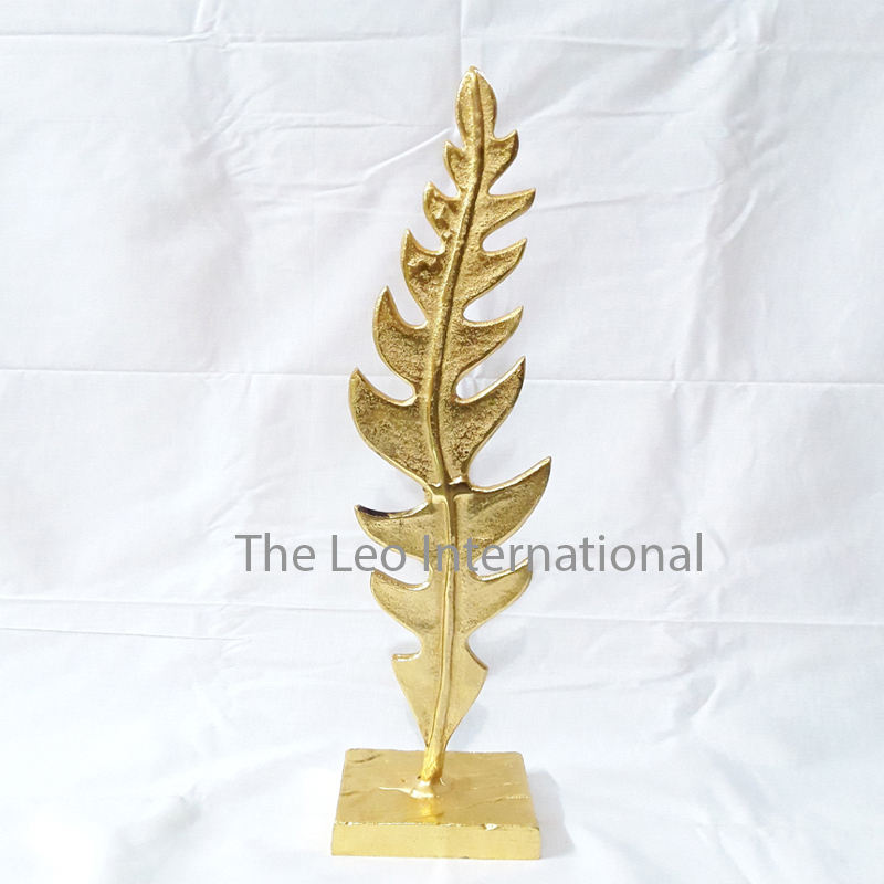 Aluminum Metal Marble Base Leaf Shape Gold Plated Modern Sculptures From India Luxury Handmade Home Decorative
