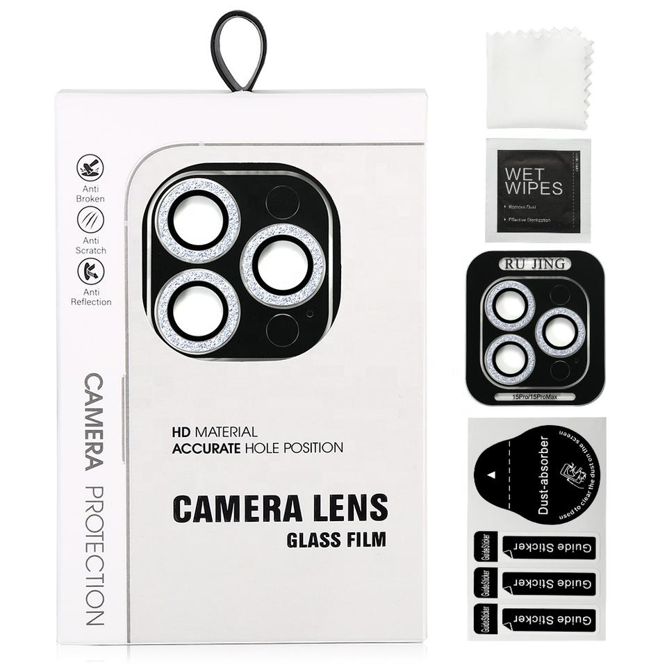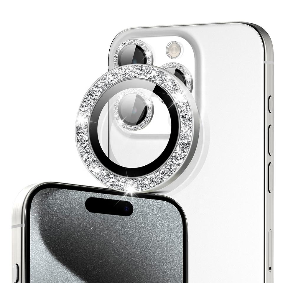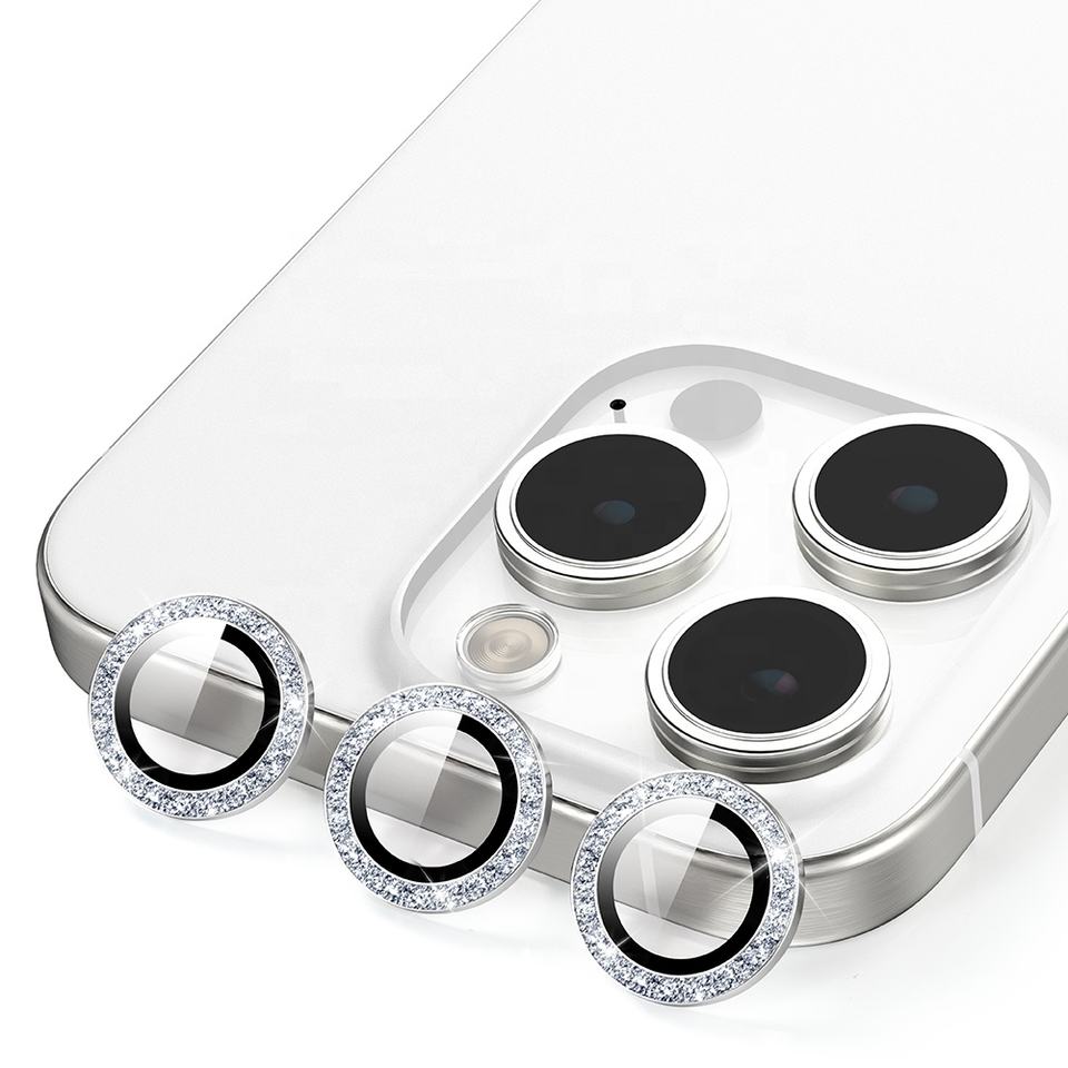 อลูมิเนียมแหวนโลหะโทรศัพท์มือถือเลนส์ป้องกันกล้องแวววาวสําหรับ iPhone 14 15 PRO MAX