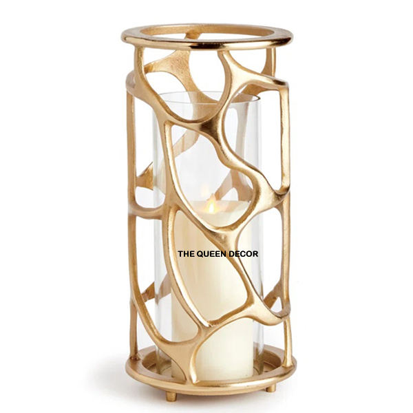 เชิงเทียนโลหะอลูมิเนียมทรงกลมดีไซน์สวยเคลือบทองทำมือสำหรับบ้านโรงแรมและร้านอาหารพร้อมกระจก