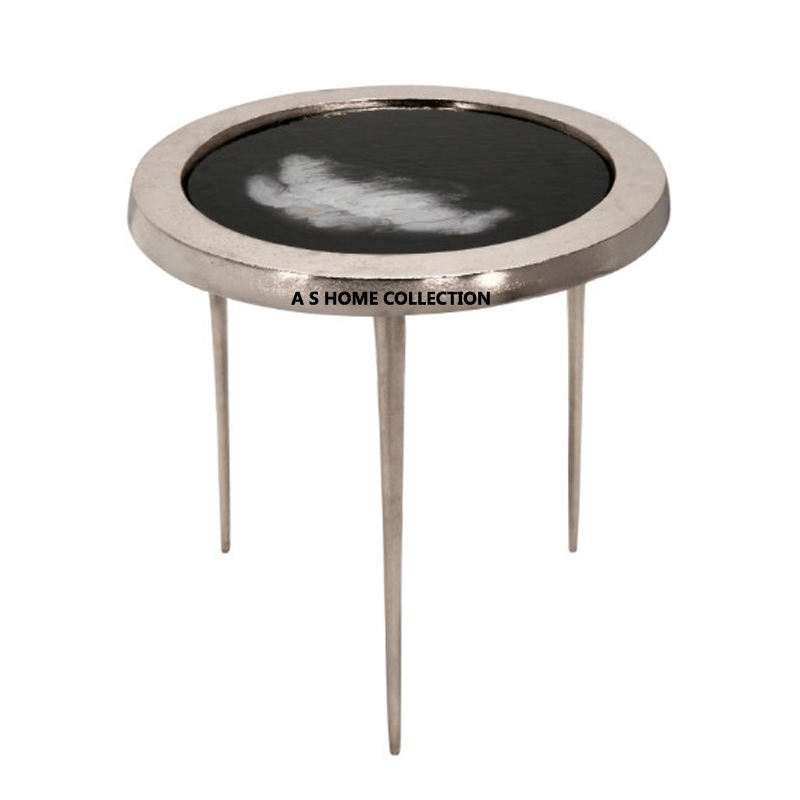 โต๊ะข้างอะลูมิเนียมโลหะทรงกลมสีทองแบบอุตสาหกรรมสำหรับพื้นที่ขนาดเล็กในห้องนั่งเล่นโปรโมชั่นแบบวินเทจ