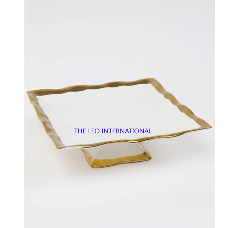 Aluminum Metal Square Shape White Gold Finished Creative Under Glazed Dishes & Plates Tray Home Decorative