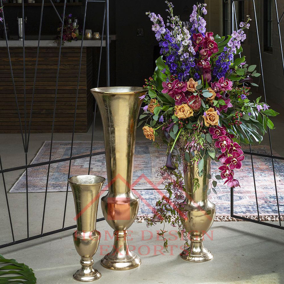โต๊ะอะลูมิเนียมพร้อมแจกันโลหะทำมือสำหรับตกแต่งงานแต่งงาน แจกันขายดีที่สุดในราคาขายส่ง