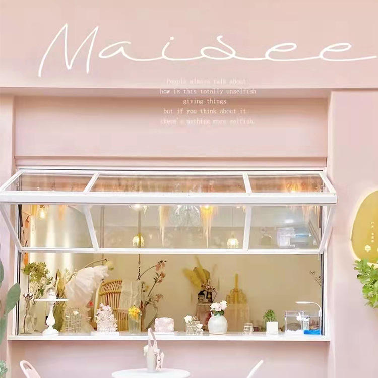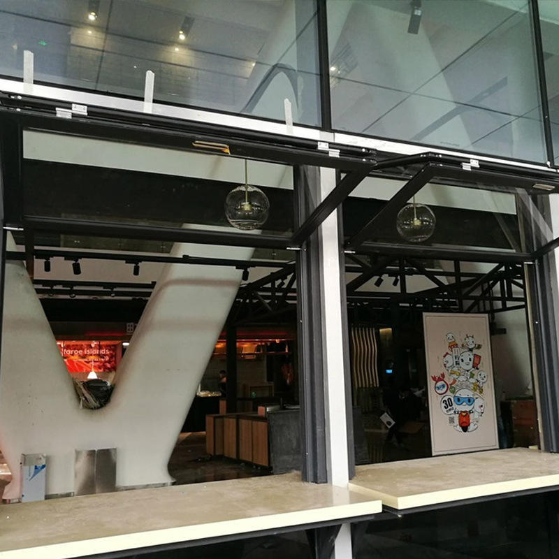 หน้าต่างอลูมิเนียมแบบไม่มีแกนไฮดรอลิก พับขึ้นลงได้ สำหรับร้านขายขนม ร้านกาแฟ บาร์ หน้าต่างเลื่อนยกได้หลายระดับ