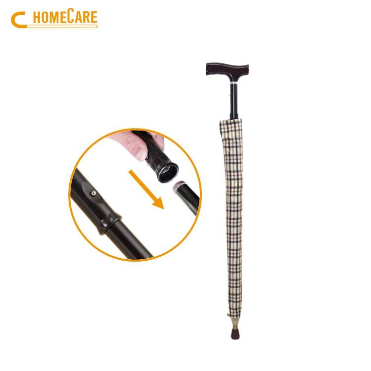 ไม้เท้าร่มอลูมิเนียม OEM 2-in-1 สีน้ำตาล ด้ามจับรูปตัว T อุปกรณ์ฟื้นฟูสมรรถภาพ ได้รับการรับรองมาตรฐาน CE รุ่น 640 คลาส I