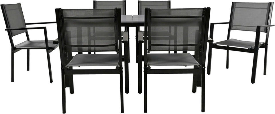 ชุดโต๊ะรับประทานอาหารอลูมิเนียมกลางแจ้งพร้อมเก้าอี้กันน้ำ6ตัวสำหรับสวนระเบียงระเบียงหรือสนามหลังบ้านสำหรับโรงแรม