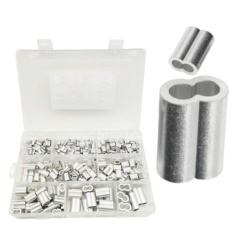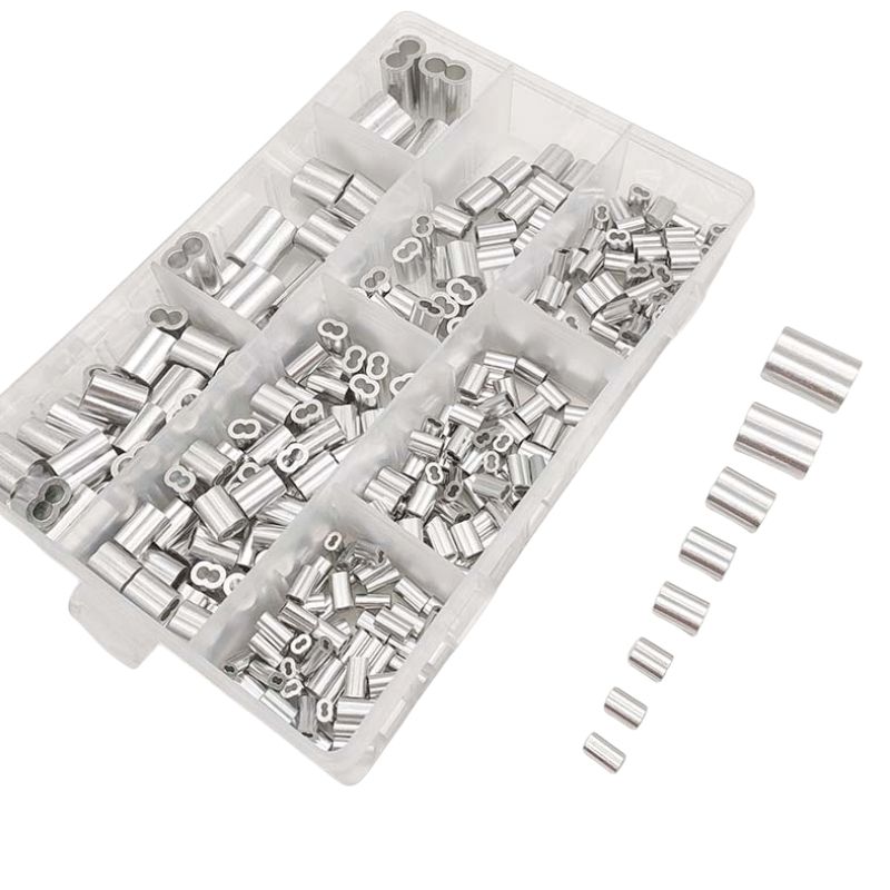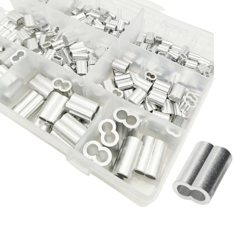 ปลอกอลูมิเนียมรูปไข่สำหรับเชื่อมสายเอ็นตกปลา เครื่องมือยึดสายไฟความแม่นยำสูง ชุบสังกะสี บรรจุภัณฑ์กล่องแบบกำหนดเองได้
