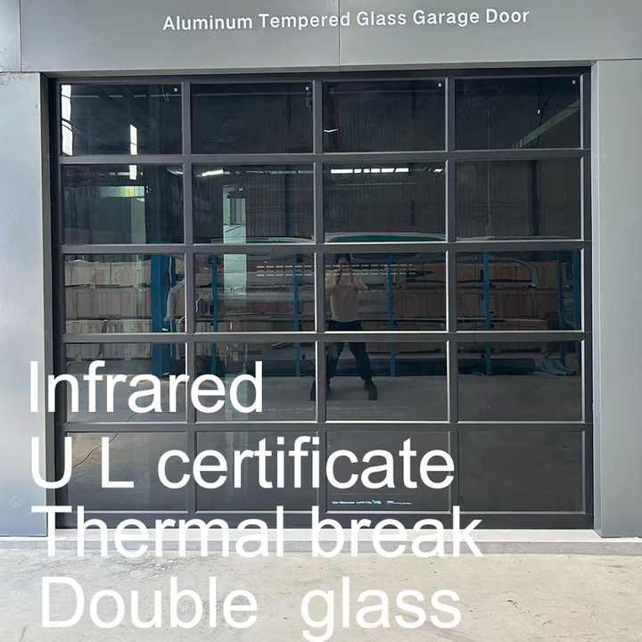 ประตูโรงรถกระจกอลูมิเนียมเหนือศีรษะประตูโรงรถอัตโนมัติแบบทันสมัยประตูโรงรถกระจกอลูมิเนียม