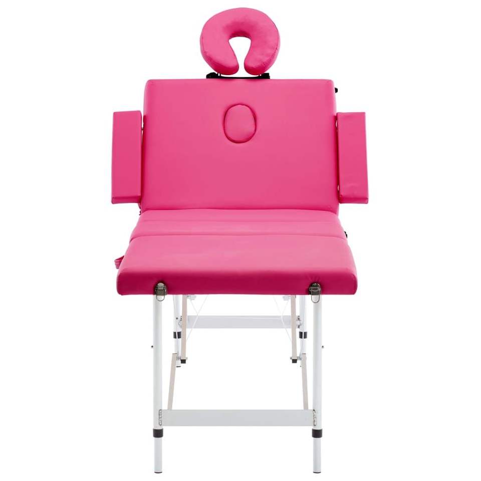 เตียงนวดพับได้ 4 โซน สีชมพู อลูมิเนียม