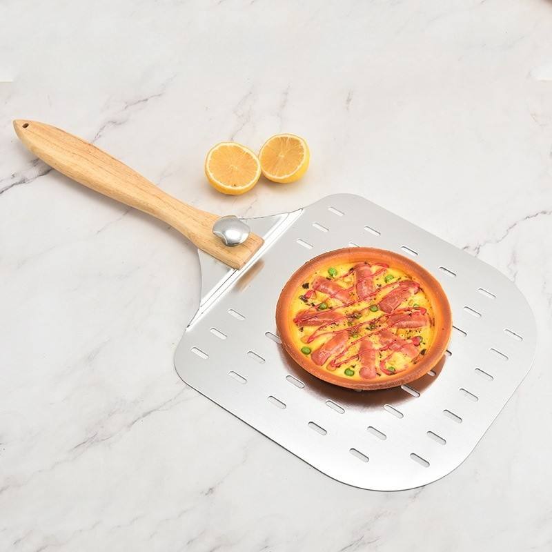 ที่ตักพิซซ่าอะลูมิเนียมพร้อมด้ามจับไม้เนื้อแข็ง สำหรับการย้ายพิซซ่าออกจากเตาอบลงจานได้อย่างง่ายดาย ใช้ได้ทั้งในบ้านและครัวมืออาชีพ