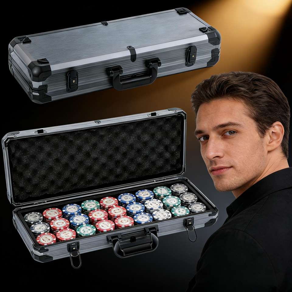 กล่องใส่ชิปโป๊กเกอร์อะลูมิเนียม 500 ชิ้น กล่องเก็บชิปการ์ด ป้องกันได้อย่างสมบูรณ์แบบ ไม่รวมชิป การ์ด และลูกเต๋า