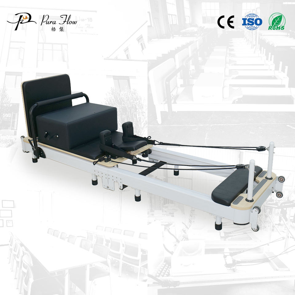 เตียงพิลาทิสแบบพกพาเตียงสีขาวสำหรับบ้านเตียงพิลาทิสเครื่องปฏิรูปทำจากอลูมิเนียม
