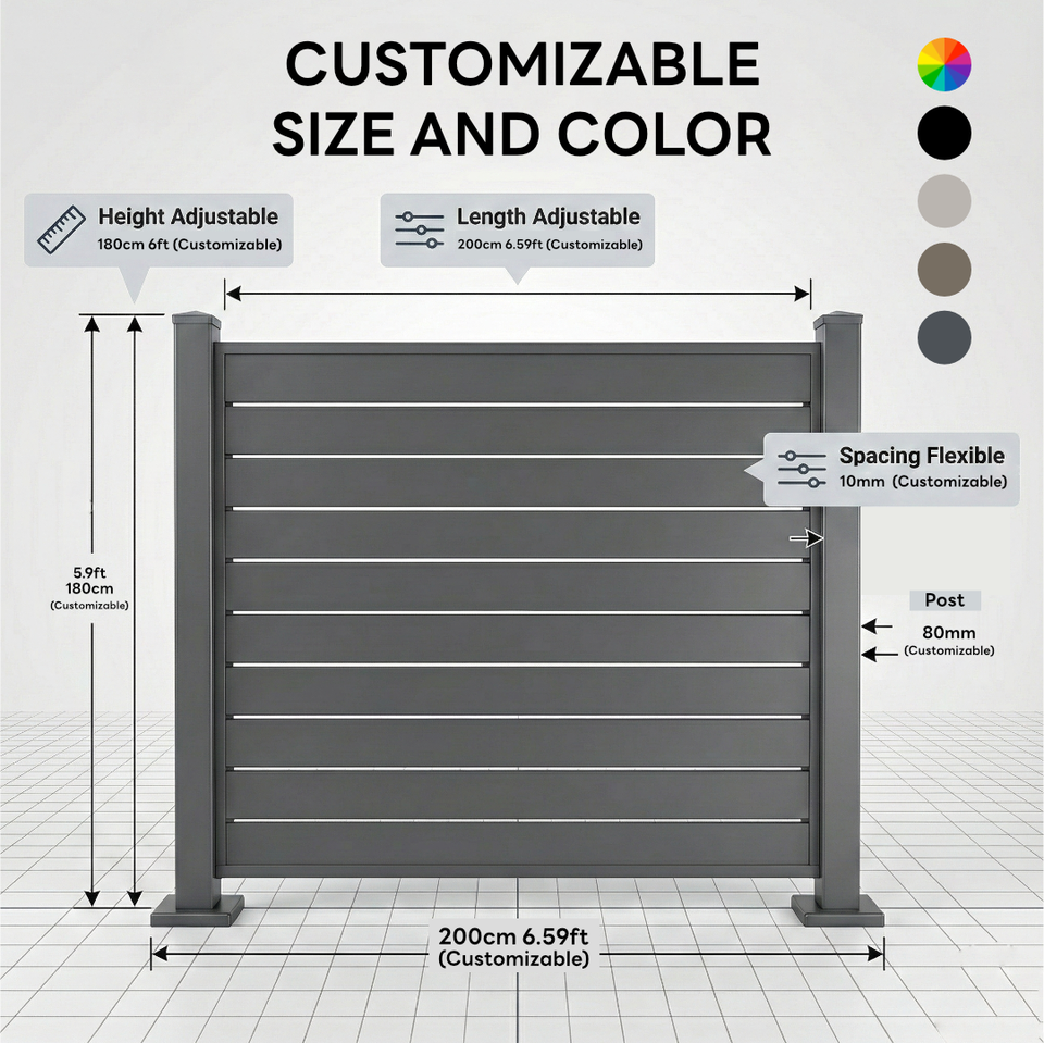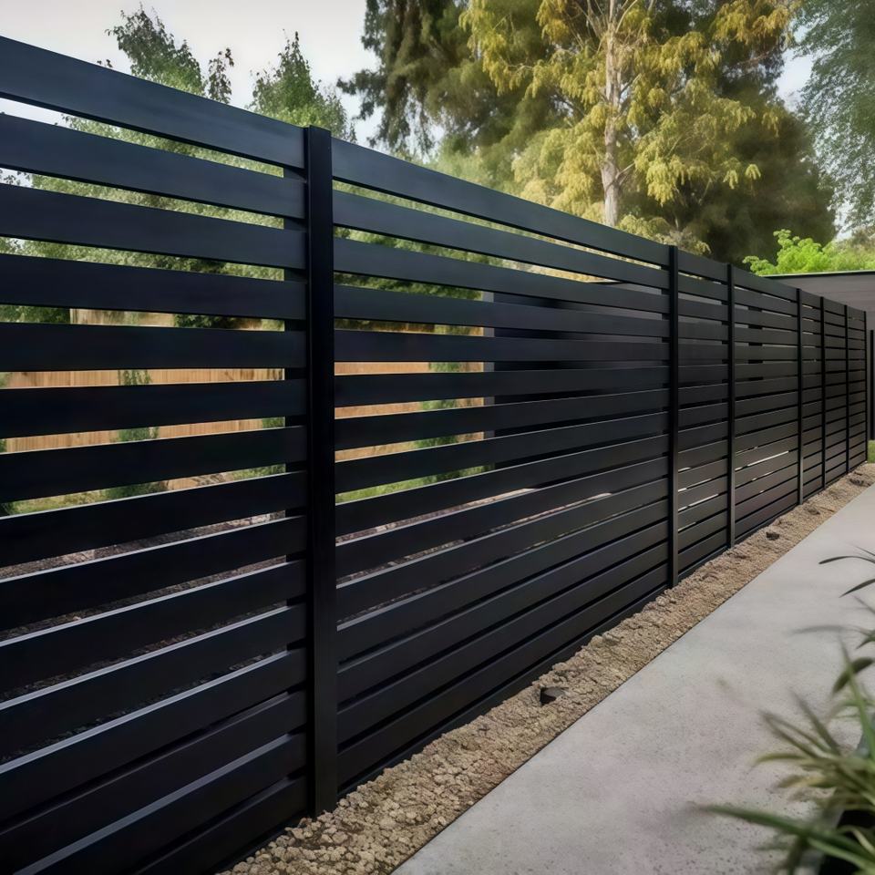 แผงรั้วรักษาความปลอดภัยสำหรับใช้ในที่พักอาศัยแผงรั้วเคลือบผงเคลือบผิวทนทาน6FT ความเป็นส่วนตัวทำจากอลูมิเนียมรวมถึงบริการสร้างแบบจำลอง3D