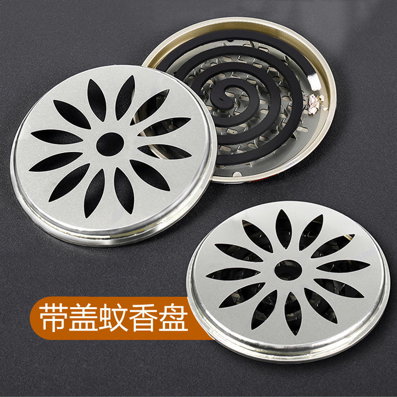 ที่ใส่ยากันยุงทรงกลมอะลูมิเนียมพร้อมฝาปิด ที่เขี่ยบุหรี่กันลมสำหรับห้องนอน ดีไซน์เรียบง่าย ปลอดภัย