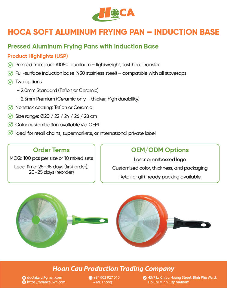 กระทะทอดเซรามิกทรงกลมอะลูมิเนียมเคลือบสารกันติด พร้อมด้ามจับพลาสติก ใช้กับเครื่องล้างจานได้ ใช้กับเตาแก๊สและเตาแม่เหล็กไฟฟ้าได้ ทำความสะอาดง่าย