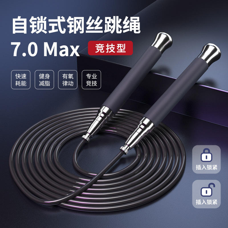 เชือกกระโดดอลูมิเนียมแบบล็อคอัตโนมัติ ปรับความยาวได้ สำหรับออกกำลังกายที่บ้าน ใช้ได้ทั้งชายและหญิง สีดำ แดง น้ำเงิน สายเหล็ก