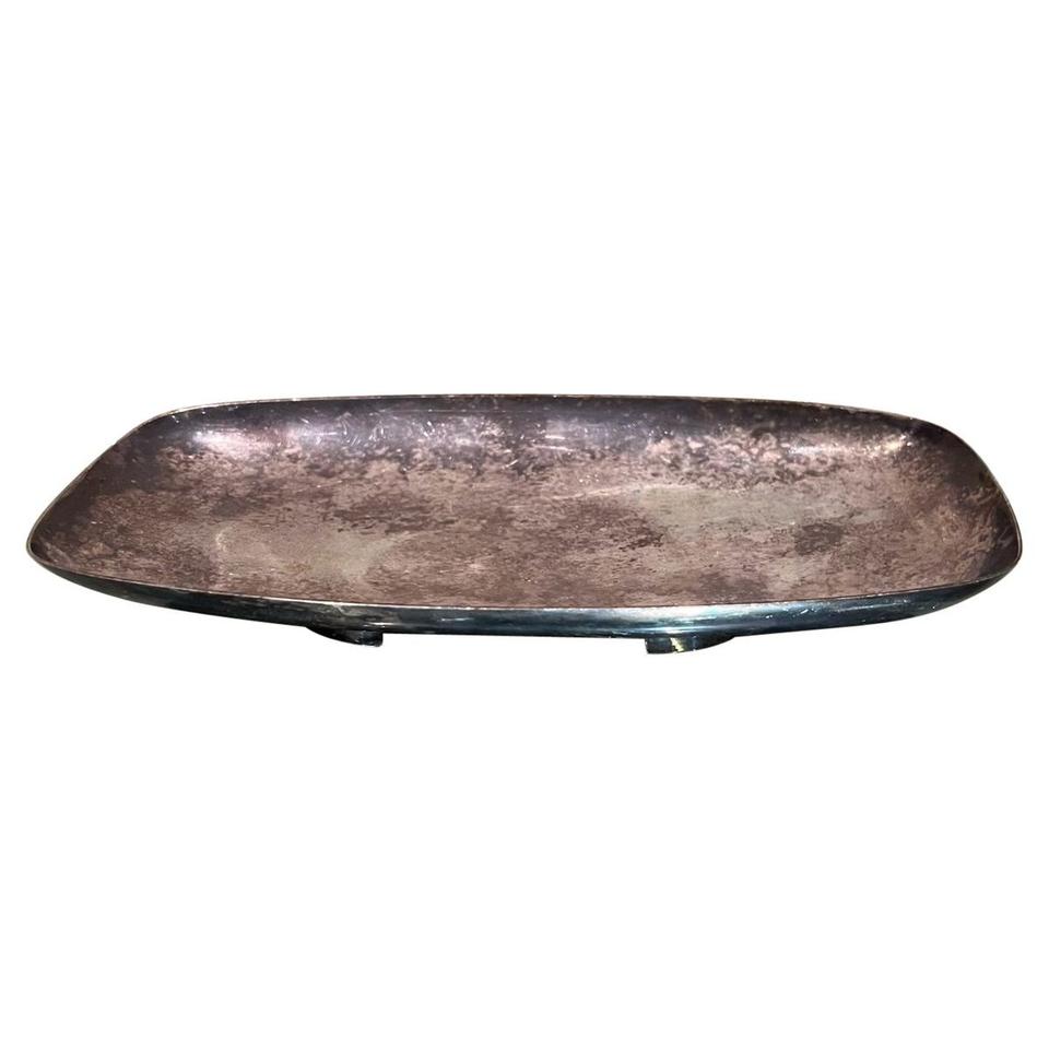ถาดเสิร์ฟอะลูมิเนียมพร้อมหูจับรูปกิ่งไม้ ถาดสี่เหลี่ยมสีเงินสำหรับเสิร์ฟอาหารเช้าและอาหารเย็นบนโต๊ะที่บ้าน