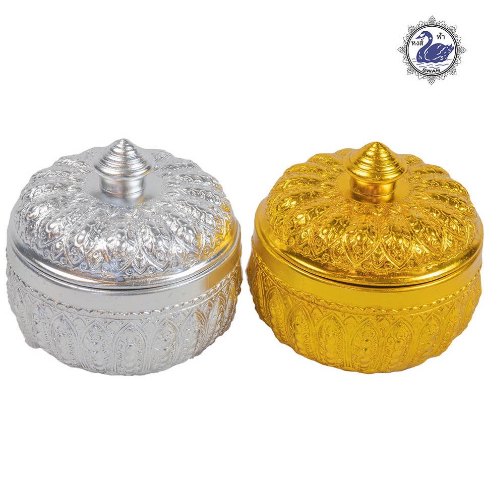 ถาดอลูมิเนียมสำหรับเสิร์ฟพร้อมฝาสีทองเงิน10ซม. ขนาดสำหรับเครื่องใช้บนโต๊ะอาหารผลิตในประเทศไทย