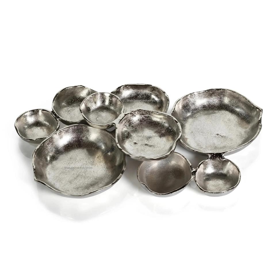 ชามอลูมิเนียมสีเงิน9ชามสำหรับงานแต่งงานและโรงแรมเครื่องใช้บนโต๊ะอาหารชามและชามใส่อาหารหลายช่อง