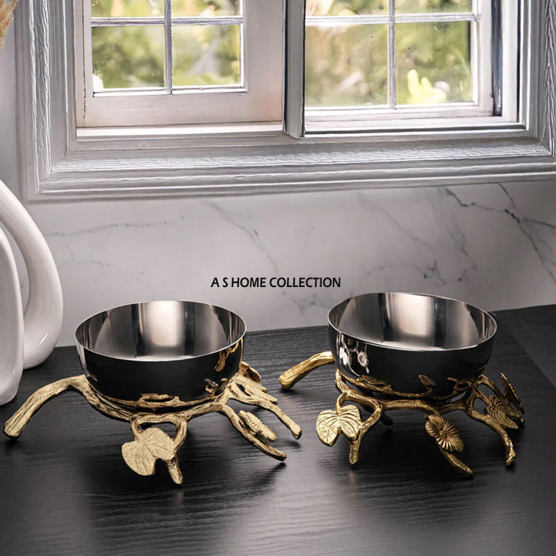ชามแปะก๊วยทรงกลมเคลือบเงาทำจากอลูมิเนียมสีเงินพร้อมผีเสื้อที่ออกแบบมาเพื่อจัดงานแต่งงานและงานเลี้ยงรีสอร์ท