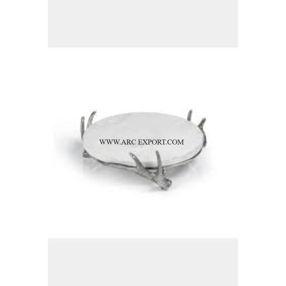 ถาดเสิร์ฟอาหารทำจากหินอ่อนแข็งทรงกลมแบบอลูมิเนียมถาดเสิร์ฟอาหารสไตล์ใหม่